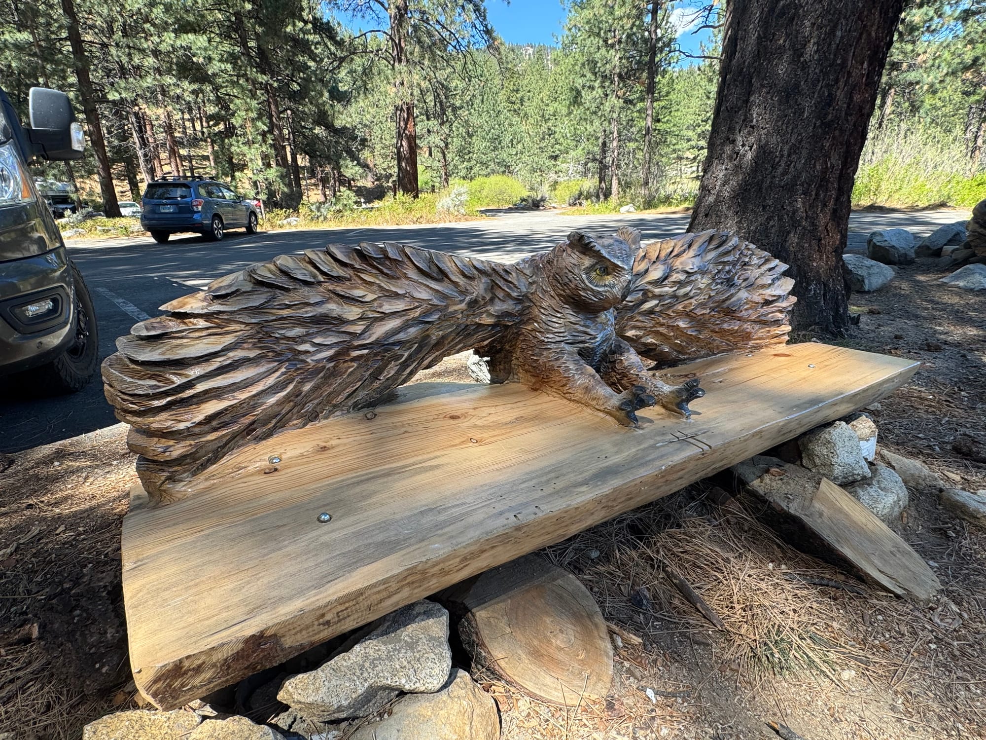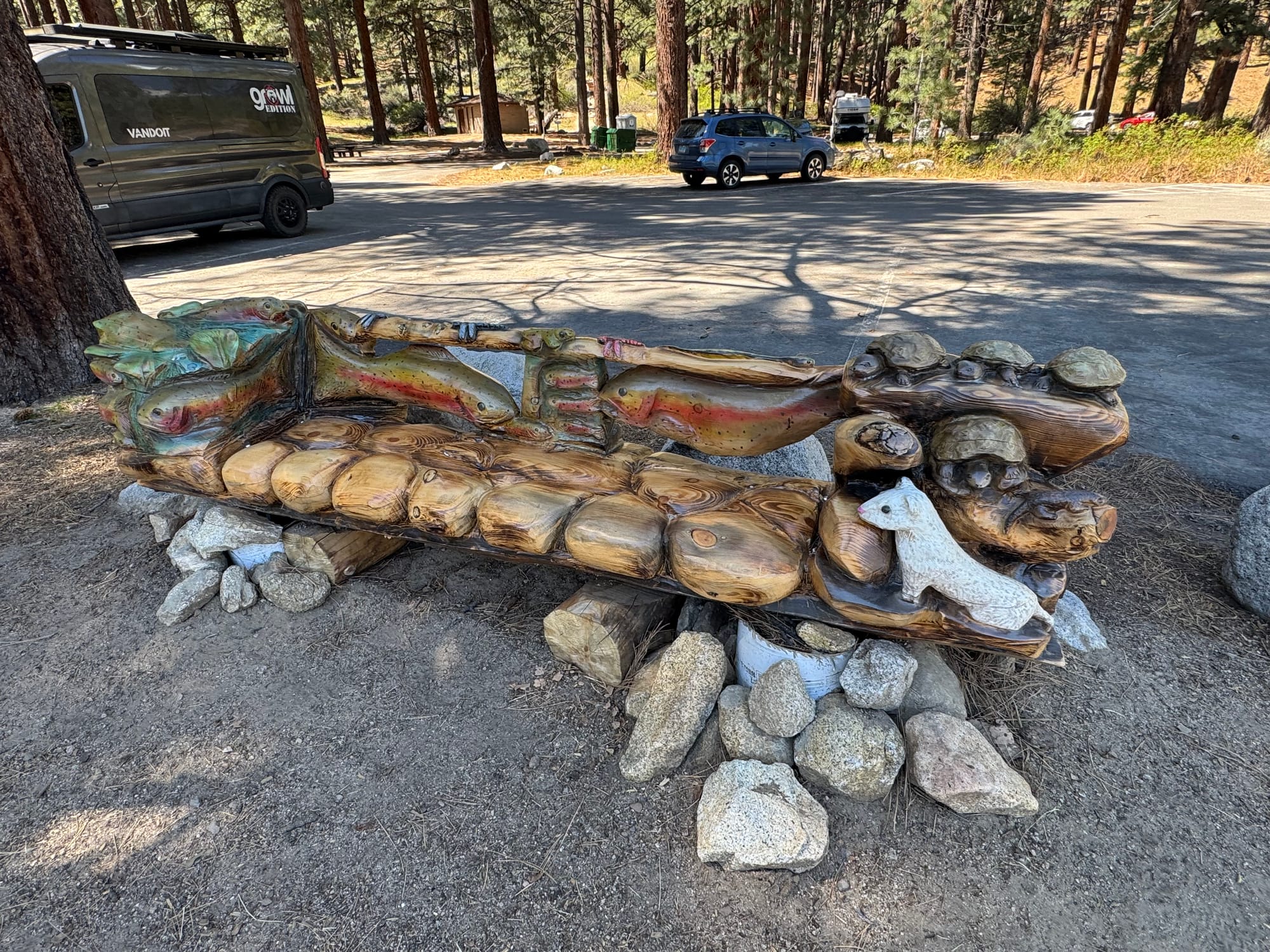 A really cool addition to the park is the wood benches and sculptures created from.some of the burned tree trunks.