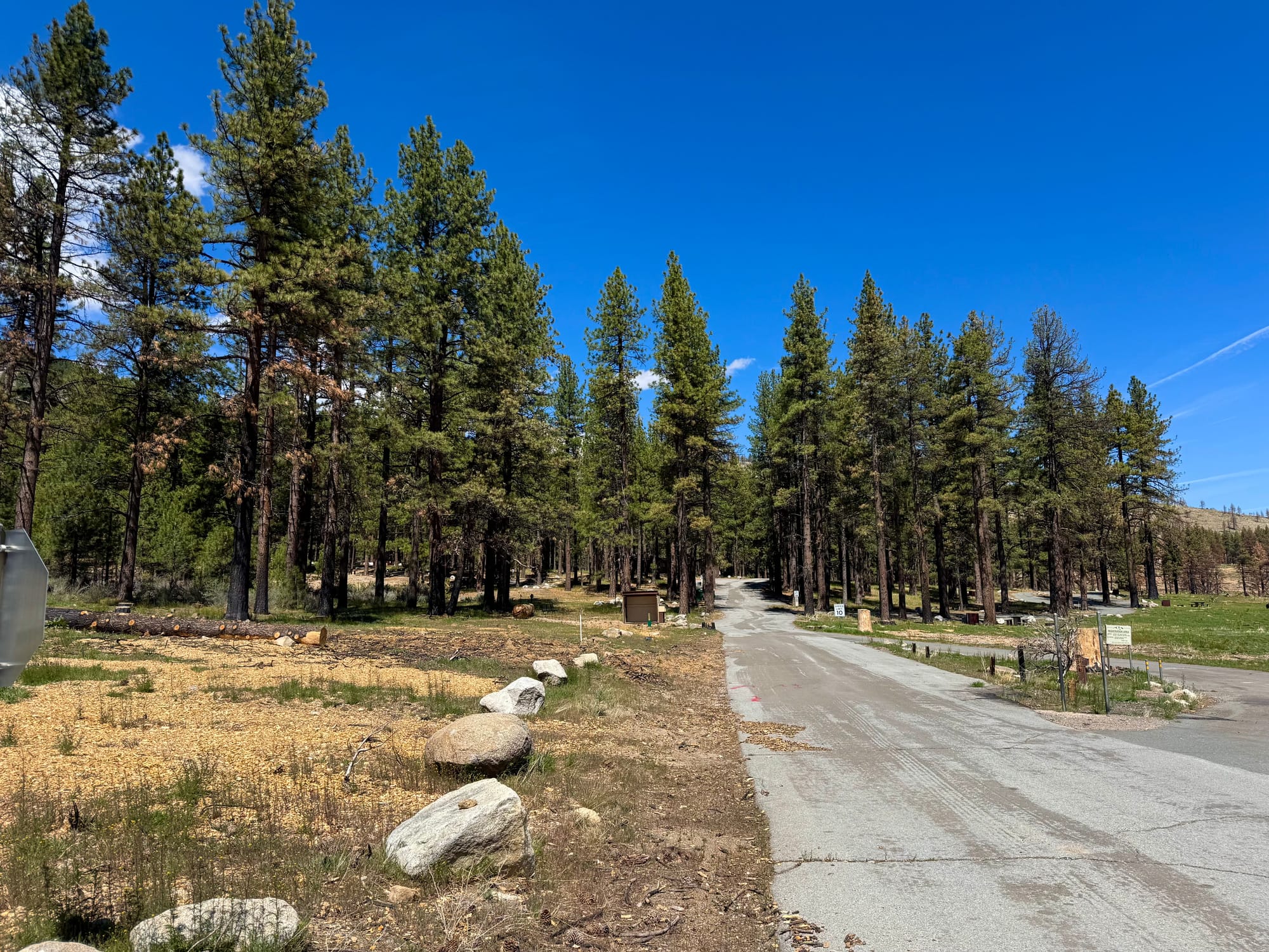 Back to the park drive, we see at this date the campground to the right is still closed as restoration is still underway. The road curves to the south and we were greeted with a welcome sight. Beyond this point, the park is intact as it was before the fire.